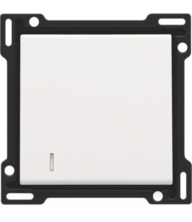 Centraalplaat in Niko Intense white steel, white coated voor enkelvoudige toets met lens voor controlelampje.