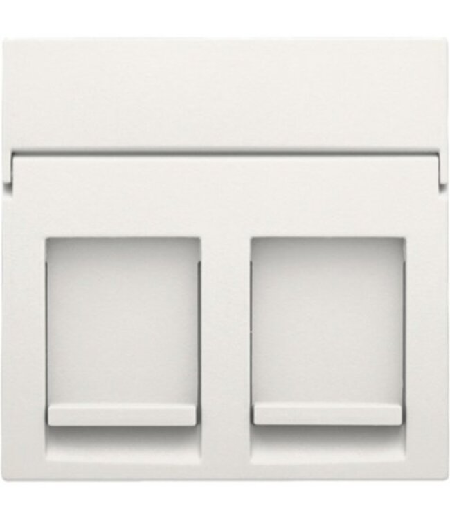 Centraalplaatje voor 2 RJ outlets in een vlakke uitvoering. De centraalplaat bevat een transparant tekstveld waarin je eenvoudig iconen of teksten kan aanbrengen. Afwerkingskleur: wit.