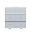 Met deze drukknop stuur je twee rolluiken, gordijnen of zonweringen of een combinatie ervan. Hij wordt via een klikmechanisme op de muurprint bevestigd. Mechanisme inclusief toets.