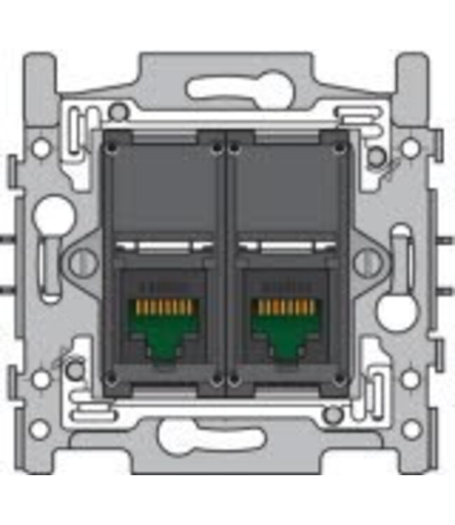 Niko wandcontactsokkel met 2 x RJ45 aansluitpunt Cat5E UTP. Ook geschikt voor power over ethernet.